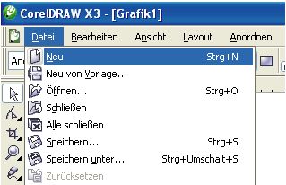 Öffnen Sie Corel Draw und wählen Sie unter Datei, die Option „Neu“aus, um ein neues Dokument zu erstellen.