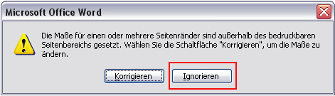 Es erscheint nun ein Fenster, in dem Sie entweder Korrigieren oder Ignorieren auswählen können. Klicken Sie auf „Ignorieren“.